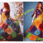Vestido colorido de ganchillo con el esquema